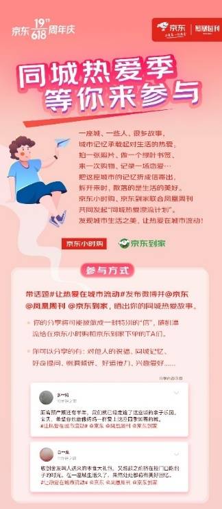 與此同時,作為618同城好物節特別企劃,5月30日,京東小時購、京東到家聯合媒體將發起"同城熱愛漂流計劃”,網友只要在微博話題#讓熱愛在城市流動#下分享同城生活的熱愛故事,就有機會獲得禮品。