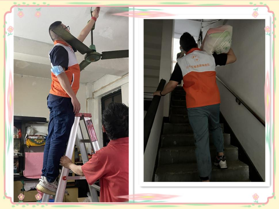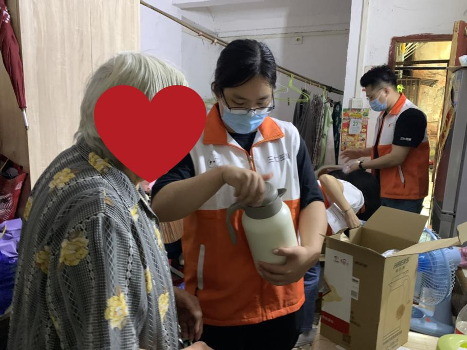 探訪當天,社工們帶領三七互娛的志願者們,將庾老的心願用品送到他的手中,為他安裝好辦公凳,並將他家裏幾個已經無法使用的凳子以及廢棄物品處理掉,騰空位置便於老人活動。
