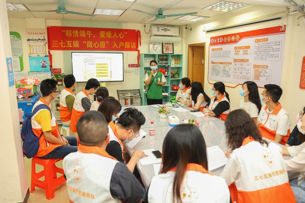 為了更好地完成此次探訪,出發入户之前,社工們為三七互娛志願者們進行入户探訪的培訓。然後一行人分成小組,在專業社工的帶領下,分別前往9户家庭,進行探訪慰問,為他們送上“微心願”物品和端午禮品。