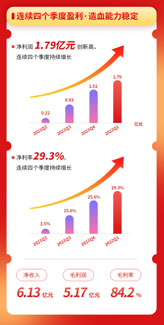 5月31日,成人職業在線教育企業尚德機構(NYSE:STG)公佈了2022年第一季度財報。財報顯示,尚德機構2022Q1獲得淨收入6.13億元,淨利潤創新高達到1.79億元, 宣告連續四個季度實現盈利。同時,2022Q1淨利率創新高達29.3%。