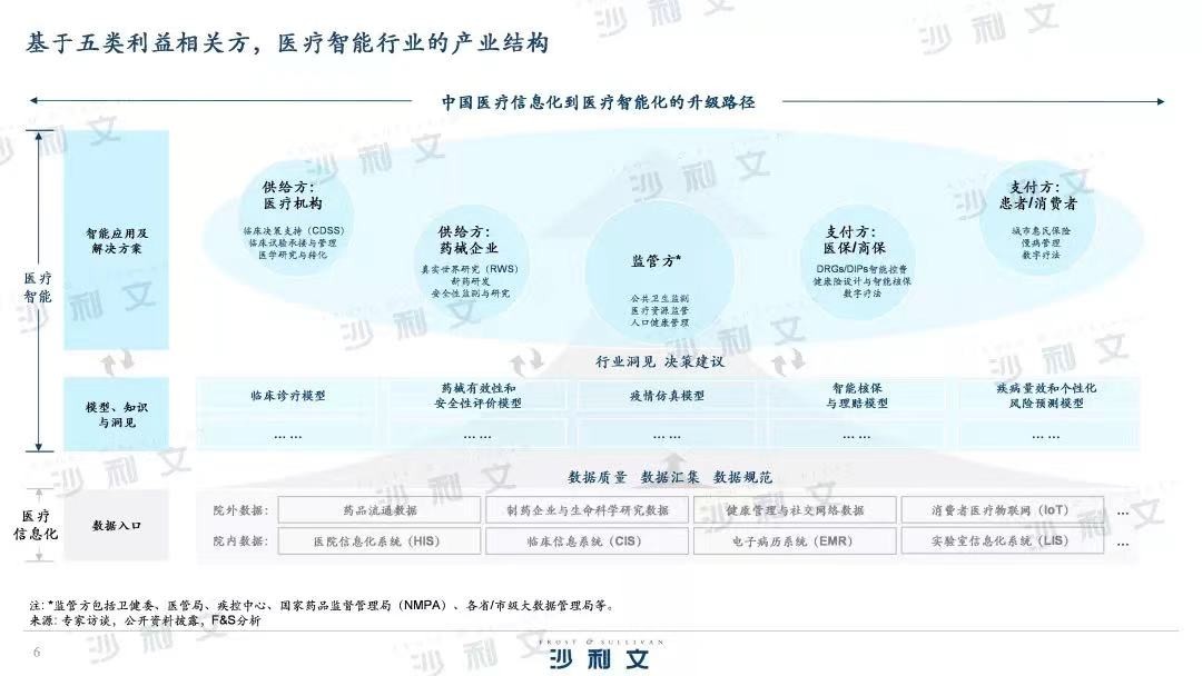 基於醫療智能,為行業的五大參與方提供覆蓋多場景的應用及降本增效解決方案。比如,面向監管方的公共衞生監測、人口健康管理解決方案,面向藥械企業的真實世界研究、安全性監測與研究解決方案等。未來,醫療智能將賦能於醫療行業,構建高效、個性化、精準化、可及的、以價值為導向的醫療體系,實現產業升級。