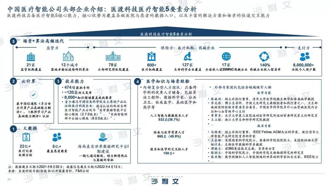白皮書通過專家觀點、人工智能技術指標、業務覆蓋程度,以及應用和解決方案落地的廣度等標準比較中國醫療智能行業內的企業,認為醫渡科技5要素能力強,引領行業內雲計算、大數據、人工智能技術、醫學知識與場景經驗、算法場景迭代能力的提升。