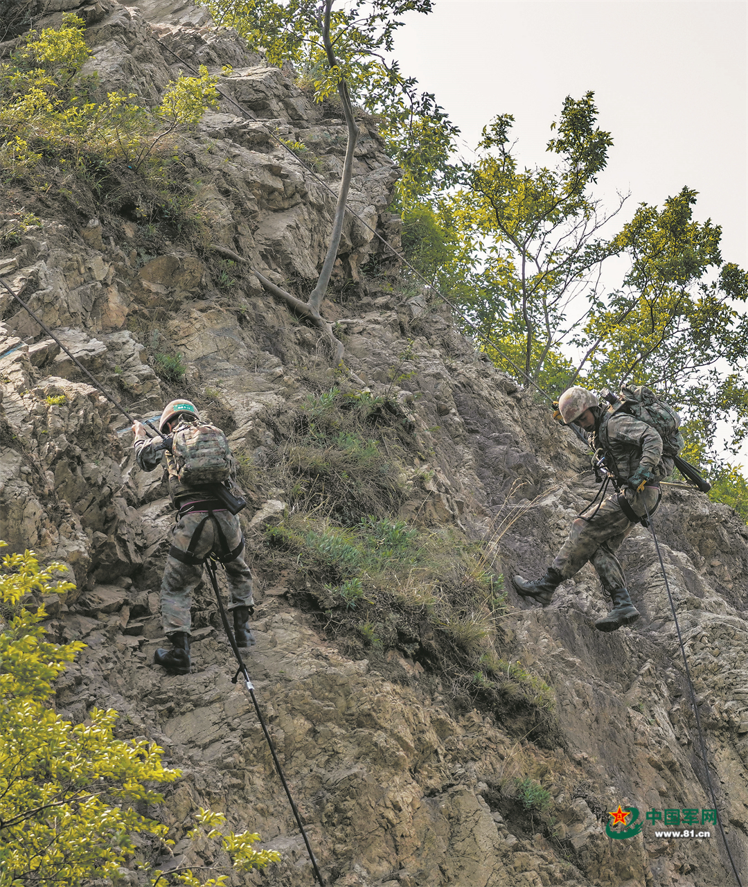 在“多能偵察士兵”課目比武現場,壕溝、迷宮、交通壕等障礙,交叉分佈在賽道上。參賽隊員爬斷橋、鑽管網、翻高牆,在摸爬滾打間戰勝一個個“攔路虎”,向着終點勇猛衝鋒。