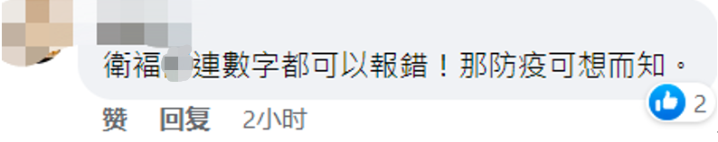 更有網友表示,“‘衞福部’連數字都可以報錯!那防疫可想而知。”↓
