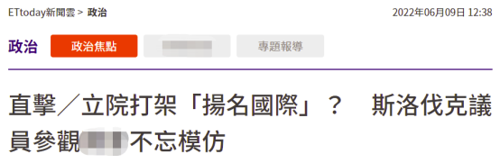 【環球網綜合報道 記者趙友平】“ETtoday新聞雲”等台媒消息稱,斯洛伐克訪台的“聯合訪問團”今日(9日)前往台“立法院”,參觀時,斯洛伐克議員現場模仿起島內藍綠“立委”開會時打架的場景。有島內網友對此感嘆道:“該哭還是該笑?”也有網友説“可憐又可悲”。