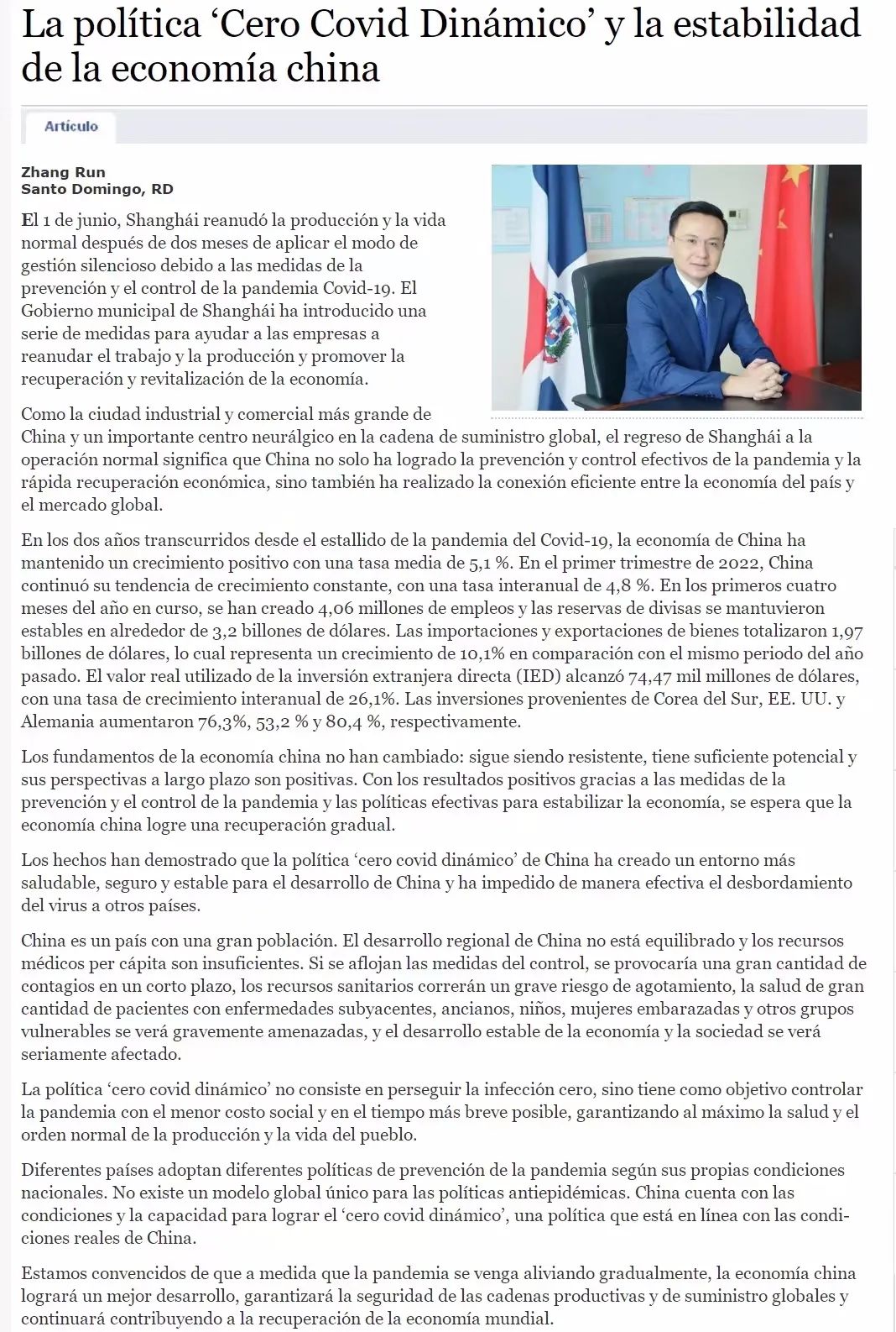 (作者張潤系中國駐多米尼加大使,2022年6月8日發表於多米尼加《里斯汀報》)