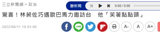 【環球網報道】據台灣《聯合報》報道,“哥本哈根民主峯會”9日、10日舉行,受邀參加的台灣無黨籍“立委”林昶佐11日凌晨在臉書發文稱,他在座談會後台碰到美國前總統奧巴馬,並當面邀請奧巴馬有機會能訪台,奧巴馬“笑着點點頭”。消息傳出後,有台媒興奮炒作這是“驚喜”,不過有島內網友諷刺,價格對的話哪個卸任政客不會笑着同意?