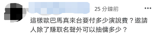 “這樣奧巴馬真來台要付多少演説費?”有人質疑,“邀請人除了賺取名聲外,可以抽傭(佣金)多少?” ↓