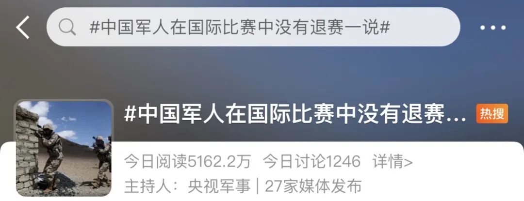 衝上熱搜!“中國軍人沒有退賽一説!”