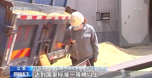 *江蘇省糧食集團泰州糧庫糧食化驗員 蔣凱揚:*今年收購的小麥品質非常高,達到國家標準一等糧以上,通過率達到95%以上。