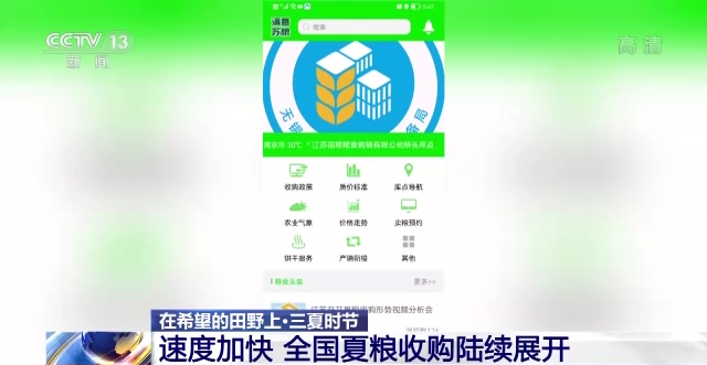 在江蘇,為方便農民和收儲企業,江蘇省糧食集團推出了一款可查詢、可預約的夏糧收購服務軟件——“滿意蘇糧”,包括“政策信息、庫點分佈、質價標準”等多個服務項目。