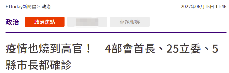 “疫情燒到高官!”台媒統計:4名“部會首長”、25名“立委”染疫