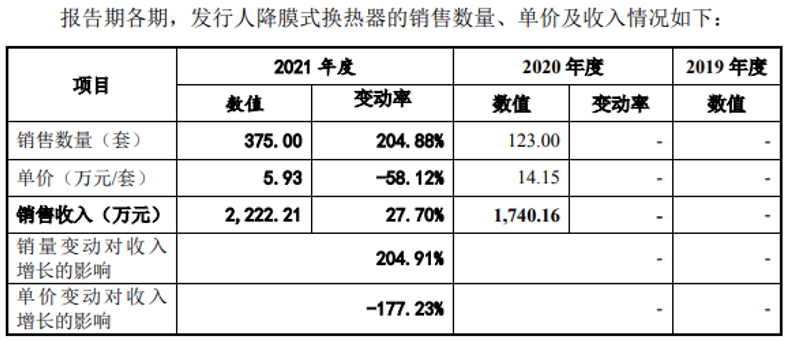 但英特科技招股書顯示,報告期內,英特科技固定資產並未大幅增加,招股書也未提及這一年產5000套中央空調用降膜換熱器生產線的大項目。而數據顯示,截至2021年,英特科技降膜換熱器銷售收入僅2222萬元,共銷售了375套。對此本網記者向英特科技求證,公司表示,相關投資合同正在履行,但對於招股書未予披露該項目的原因並未做出解釋。