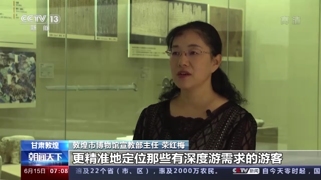 *敦煌市博物館宣教部主任 榮紅梅:*他們可以通過他們的營銷手段,更精準地定位那些有深度遊需求的遊客。而我們博物館裏又有他們在外面看不到的藏品資源,以及文化訊息,可以説這是優勢互補吧。