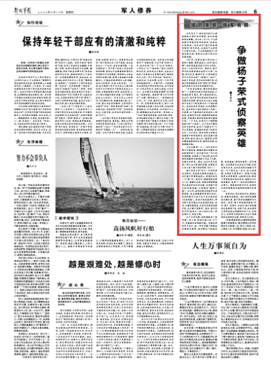 正式比賽那一天,一名隊員在比賽中不慎受傷,眼看就要比到最吃勁的奔襲階段了,他咬着牙説:“今天就是跑斷腿,也要跟上!”就這樣,我們憑着團結精神和頑強毅力完成了比賽,成績名列前茅。賽後,這名隊員對我講:“拼盡全力奔跑的時候,我感覺自己身上有了楊子榮的那股‘勁頭’。”