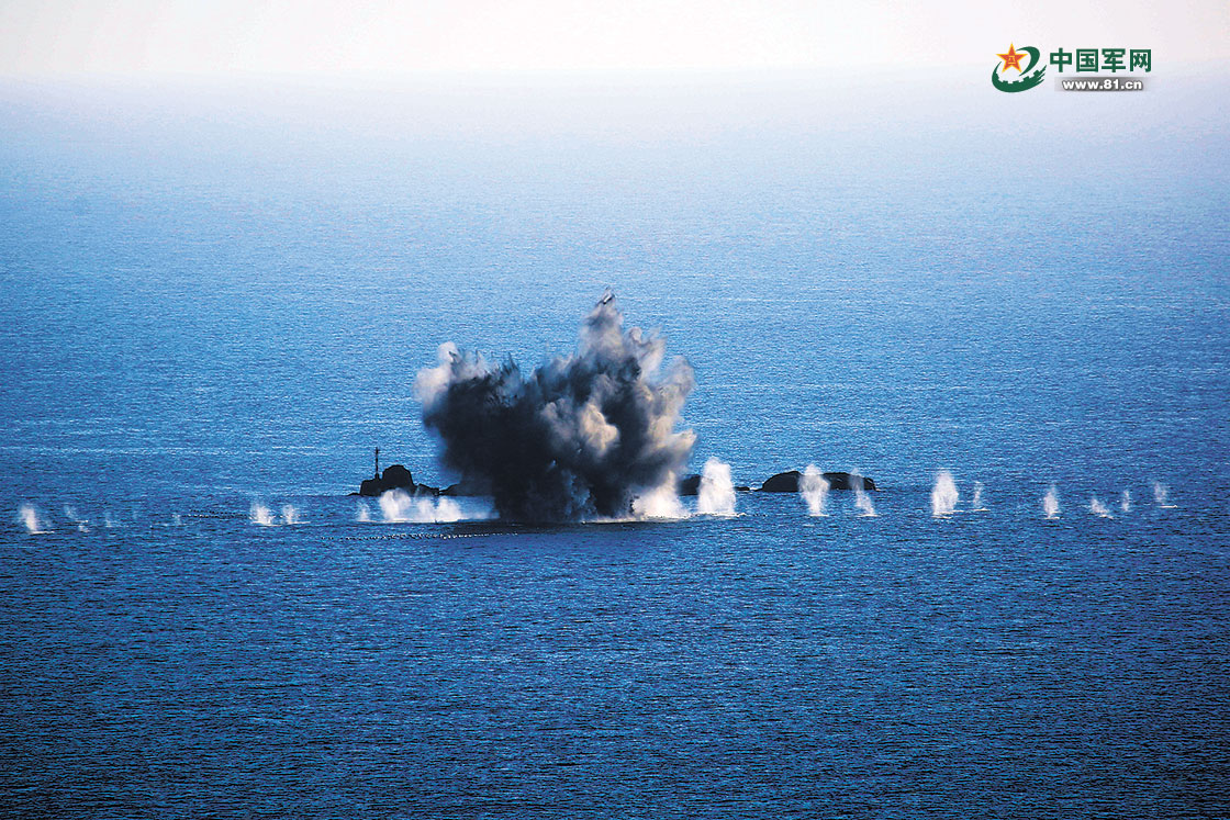 首輪投彈完畢後,飛行員按照指揮員指令建立攻擊航線,對目標再次進行俯衝火箭彈射擊。瞄準,穩住,射擊!動作一氣呵成,數枚火箭彈直撲靶標。轉眼間,海面上騰起團團巨浪。