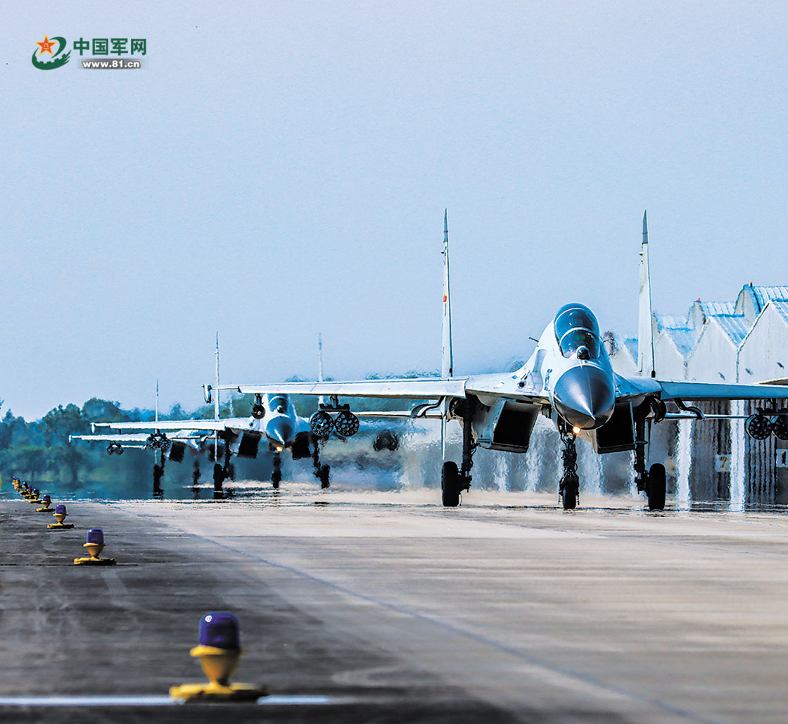 “計時起飛!”上午6時許,隨着指揮員一聲令下,數架戰機依次滑出起飛,在空中集結後飛赴靶場空域。