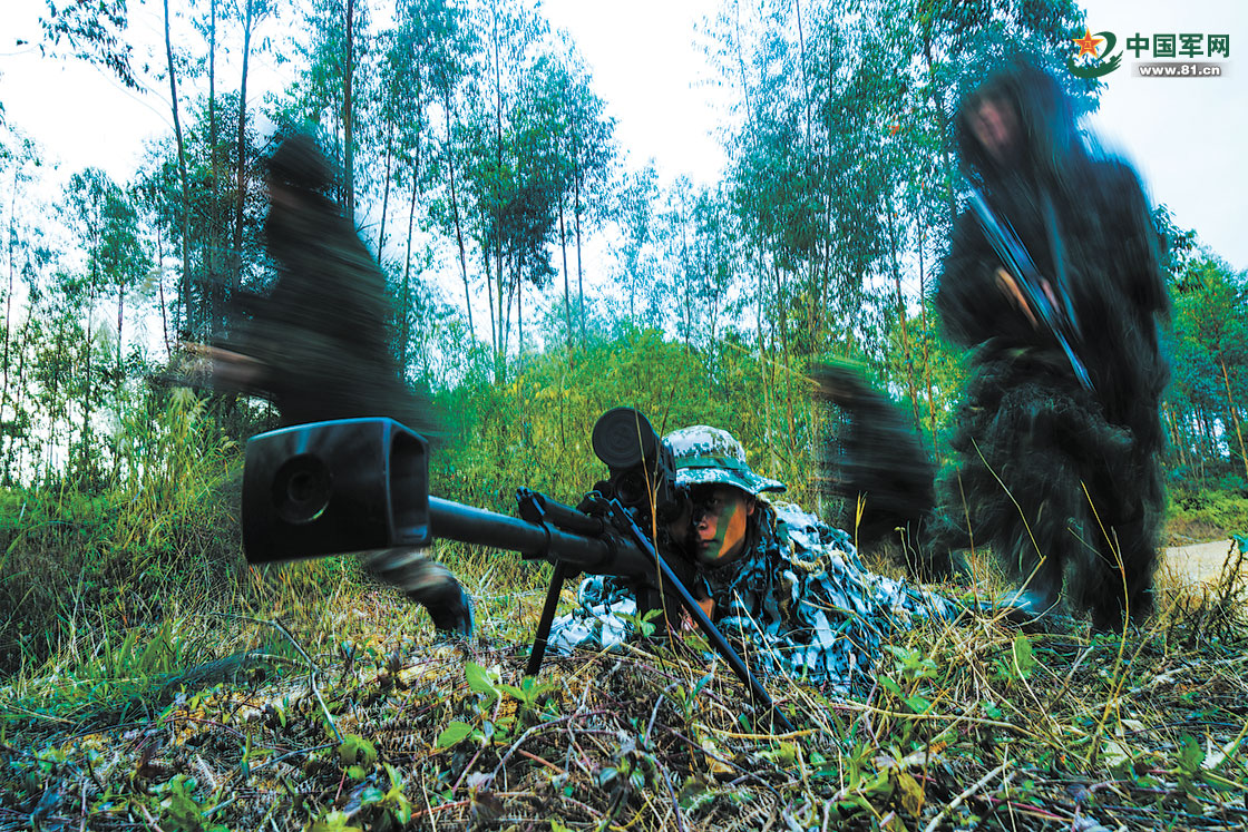 第73集團軍某旅偵察營武裝偵察連狙擊小組展開戰術訓練。趙梟涵、趙 萌攝