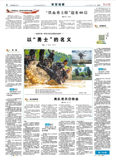 以往評選出的“鐵血勇士”中,獲獎者都是清一色的中、高級軍士和軍官。看到“鐵血勇士榜”名單裏出現了一位00後的名字,該旅政治工作部主任楊明面露喜色:“這是一個好的開端。‘鐵血勇士榜’今後有望迎來更多年輕的‘鐵血勇士’。”