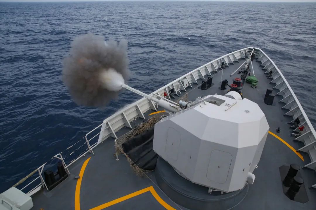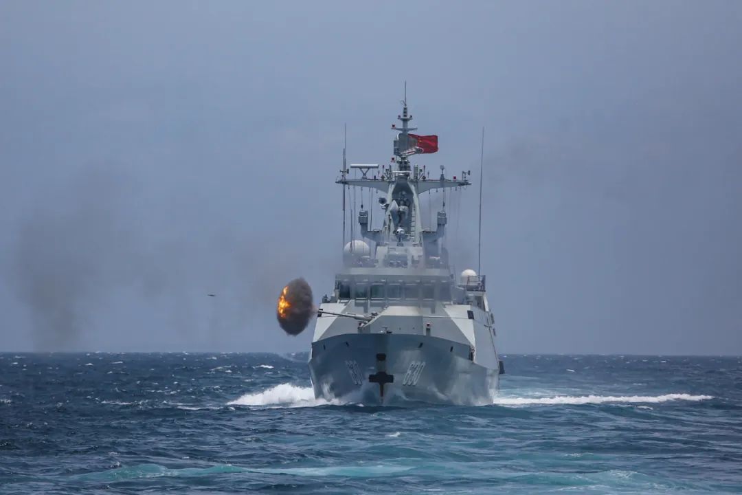 *“開始射擊!”*隨着口令下達,隆隆炮聲響徹海天。