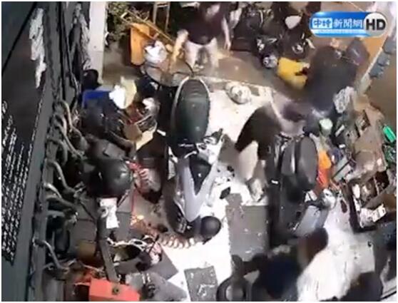 據報道,這起“球棒隊”攻擊事件發生在14日22時左右,一羣身着黑衣的人拿着球棒衝進機車行,先是對擺放的摩托車亂砸,甚至還有人在店內狂打,店內的人看到這個情況,一部分往裏邊閃躲,但有兩名男子非常淡定,看着這一切的發生。報道稱,事發當時還有一名男子疑似亮槍。