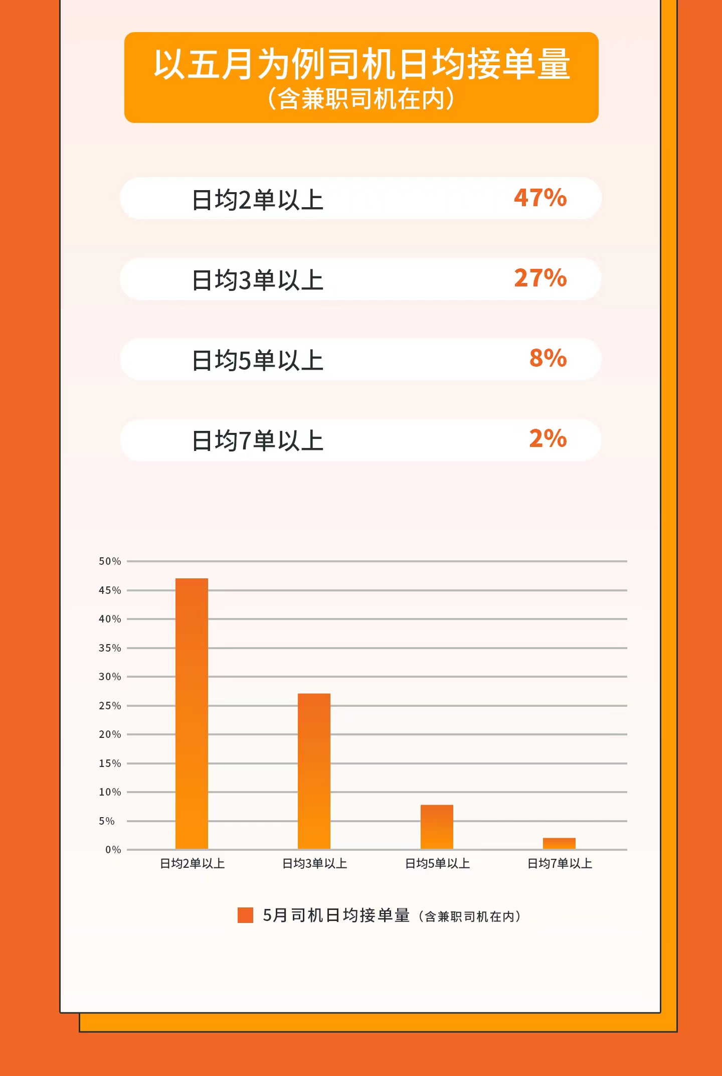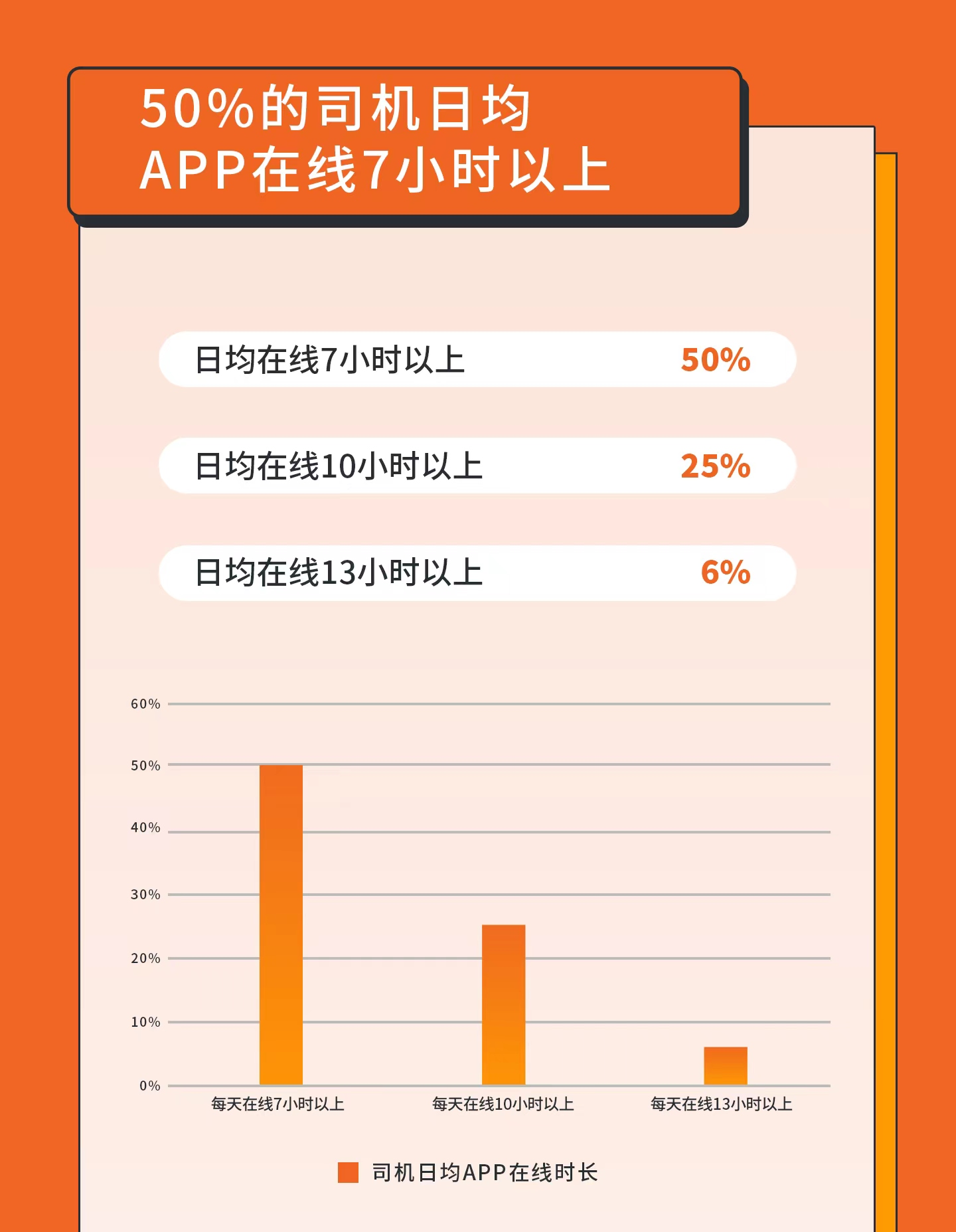 雖然闊別以往熟悉的工作環境、積累多年的技能經驗,這些貨車司機沒有被生活壓倒。他們辛勤勞作,付出比別人更多的努力。貨拉拉樣本數據顯示,以5月為例,含兼職在內的800多位司機中,“貨拉拉司機端APP”處於在線等單、接單狀態超200多個小時的佔據50%以上。50%的司機平均每天在線7個小時,25%的司機平均每天在線10個小時,有6%的司機甚至每天在線13個小時。含兼職司機在內,有47%的司機平均每天接了2單以上,8%的司機平均每天接5單以上,2%的司機日均接7單以上。