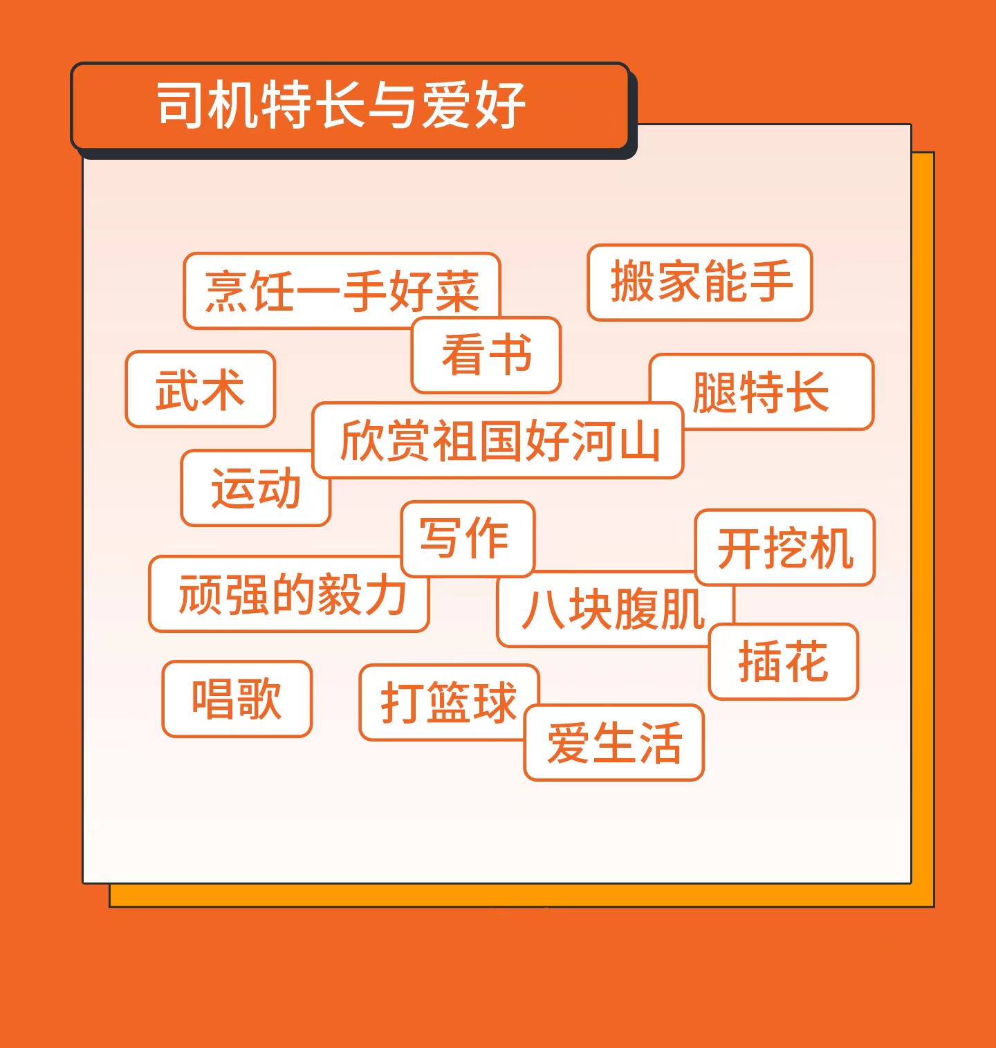 嘉興的馬師傅曾是工程建設公司的企業負責人,由於工程虧損,一直在家裏待業。今年2月一次偶然的機會加入了貨拉拉。加入貨拉拉平台的三個多月,他一共接了754單。他堅信“世上無難事,只怕有心人”。福建廈門盧師傅曾是工廠的技術員,剛加入貨拉拉時特別生疏,後來通過學習,很快摸索到貨運市場規律,目前幾乎平均每天接11單左右。