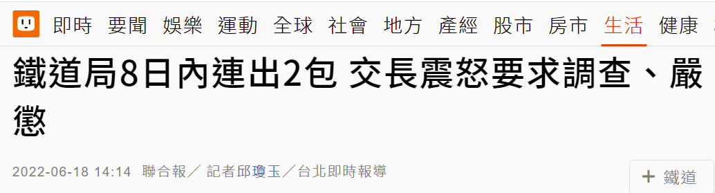 台鐵路施工狀況不斷,8天兩度引發列車事故,台“交通部長”震怒