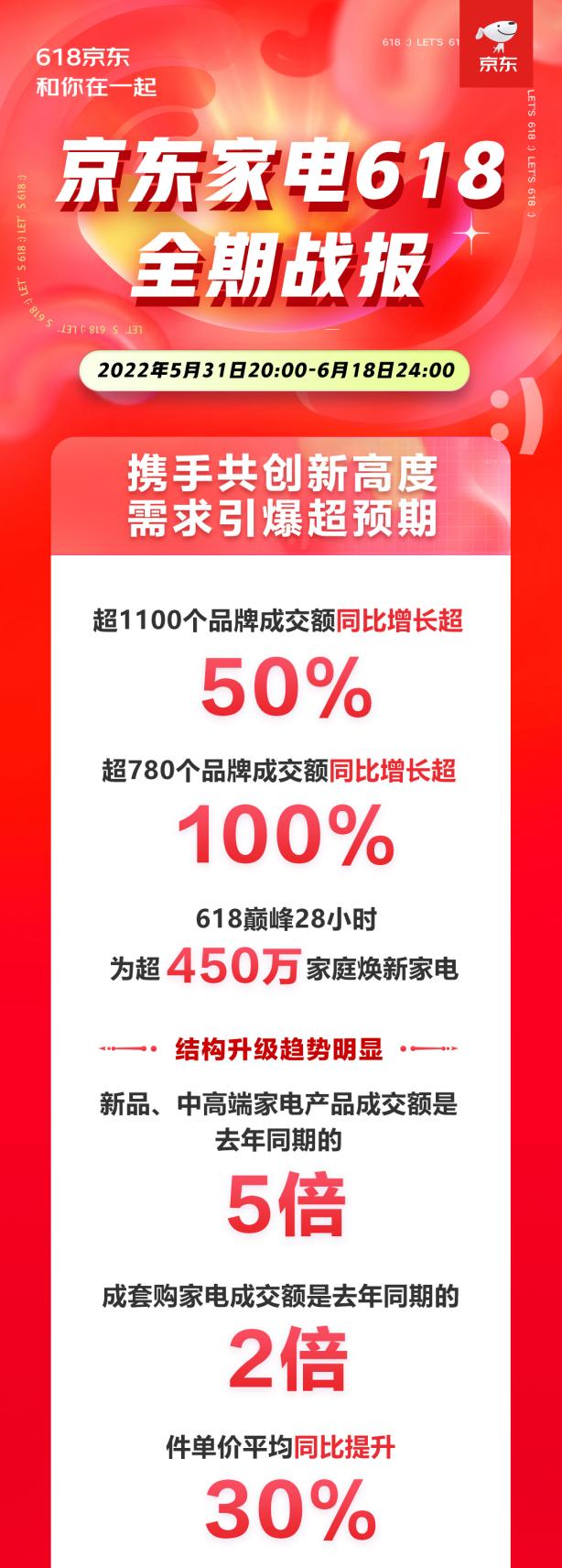 【環球網科技綜合報道】截止到6月18日晚23:59,2022京東618再創新高。今年618,也是京東的19週年慶,京東家電全渠道全品類銷售表現亮眼。
