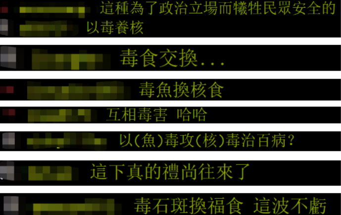 報道稱,相關報道經轉發至島內論壇PTT後,網友對於鄭運鵬的説法並不認同。有網友痛批道:“這不又是靠政治賣農產品?無限循環。”“黑心廠商出毒魚,然後換來核食。”“這竟然是報答,就不能改善嗎?”↓