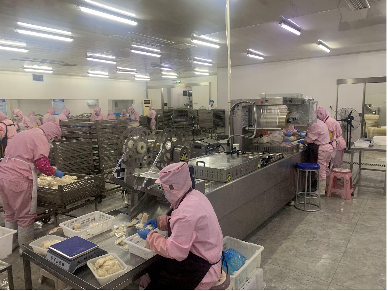 生產、加工車間負責人姜楠介紹,4條全自動生產線每小時能清洗、加工、分揀出1萬斤生蠔。