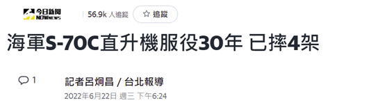“台軍反潛直升機墜毀”續:S-70C服役30多年來,已摔4架