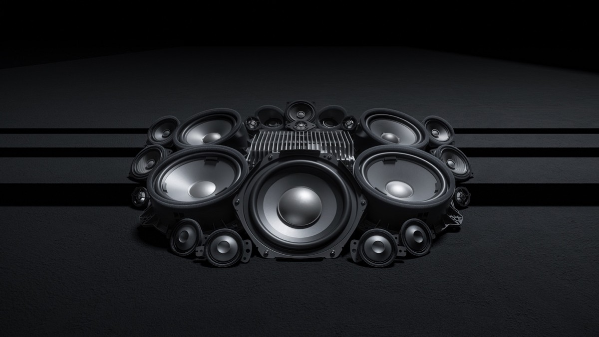 理想L9在行業中首創了7.3.4全景聲音響佈局,由7組揚聲器組成全車環繞,3個重低音單元組成低音矩陣,4個頂部揚聲器組成天空環繞。全車擁有21個揚聲器,高音單元採用鋁膜,中音單元採用凱夫拉材質,低音單元採用碳纖維材質,功放最大功率高達2160瓦。