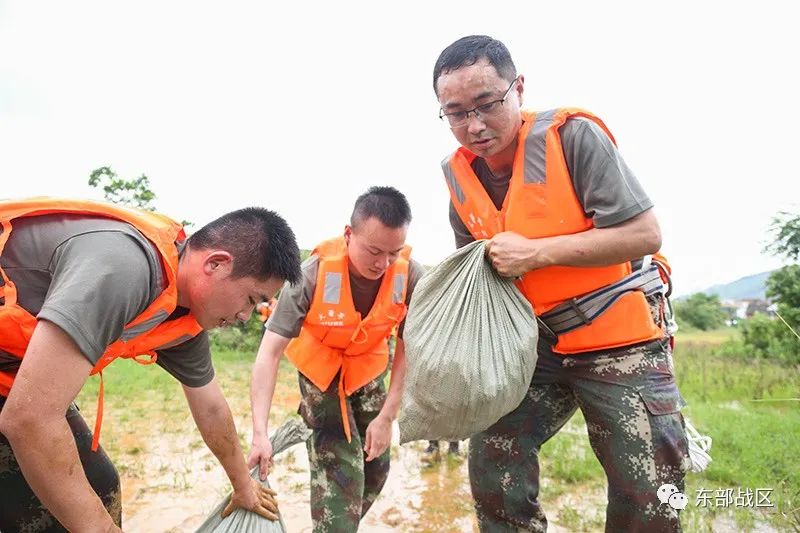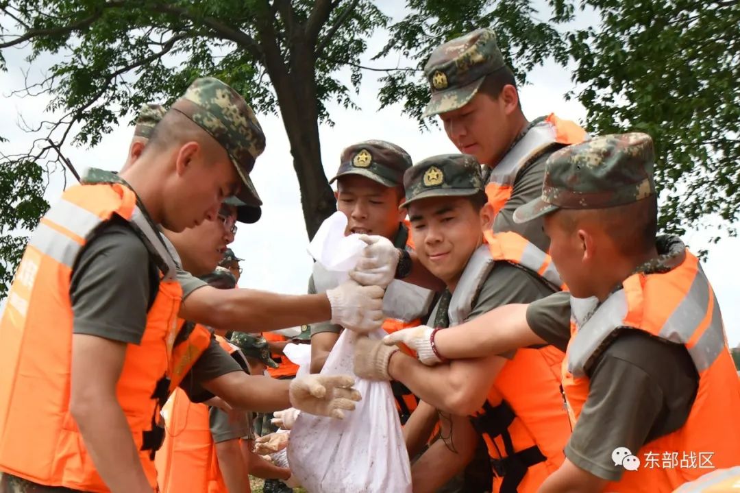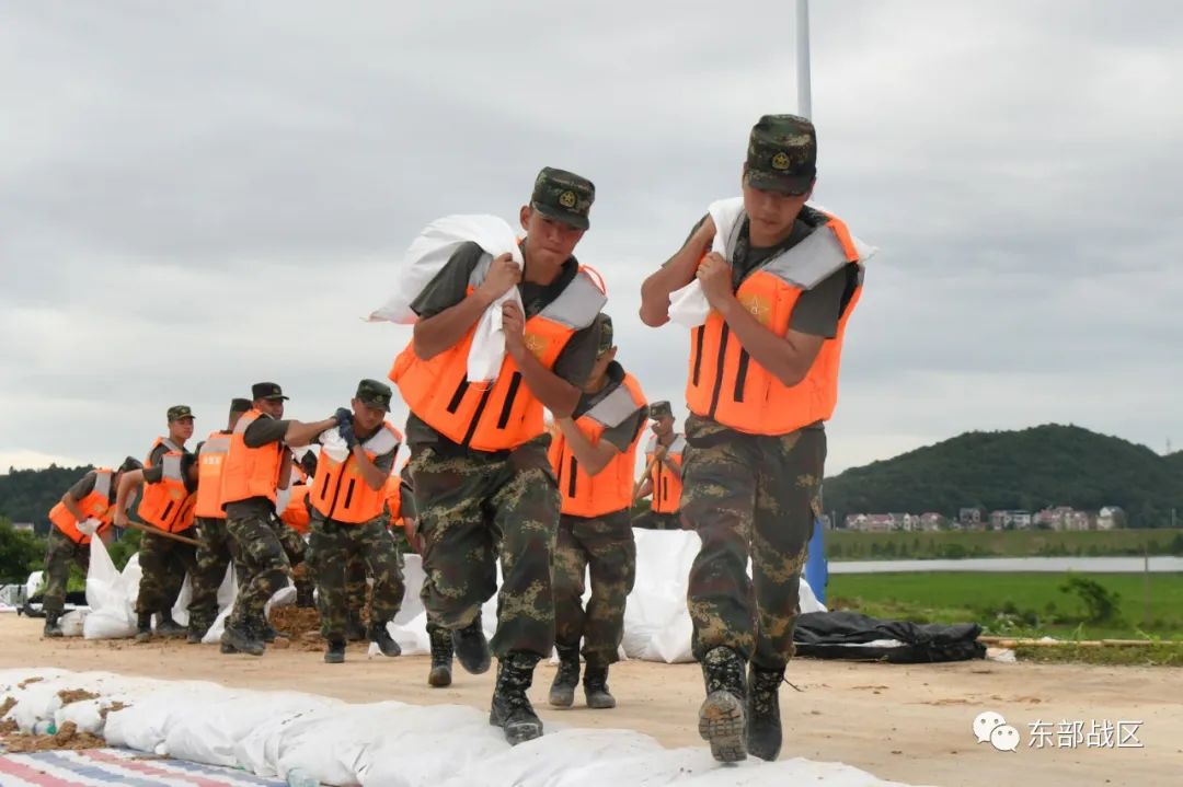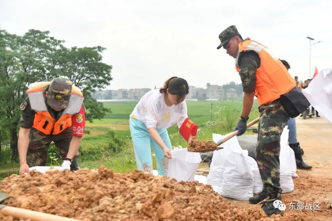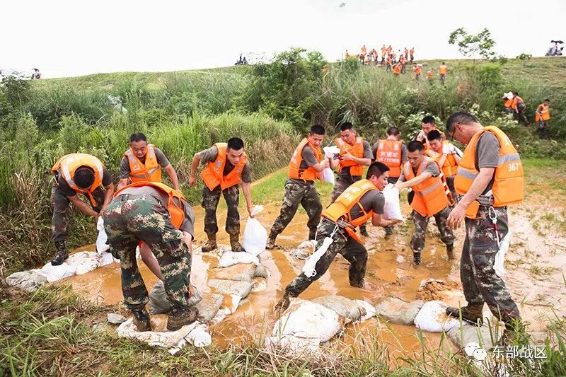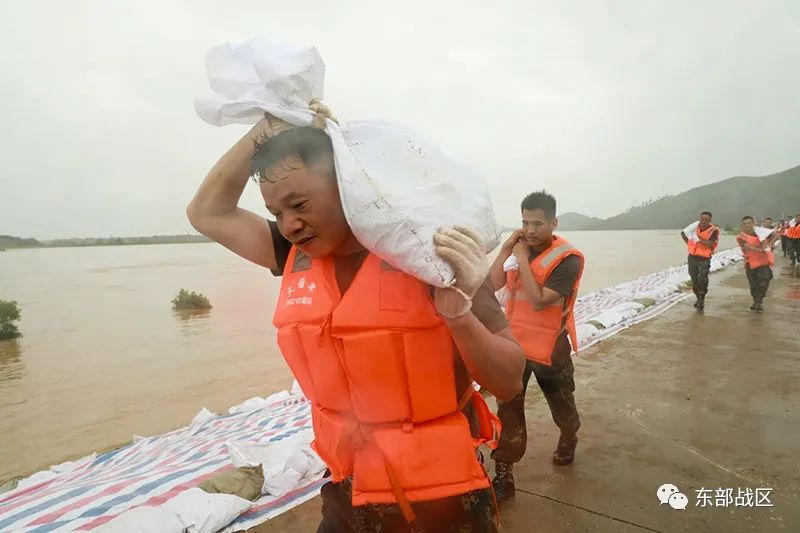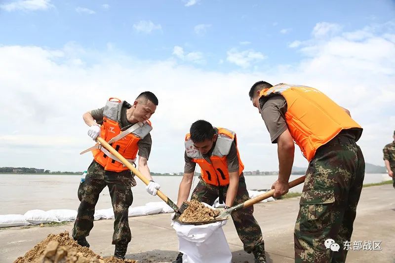 裝填沙袋、鋪設防浪布、加固堤壩……