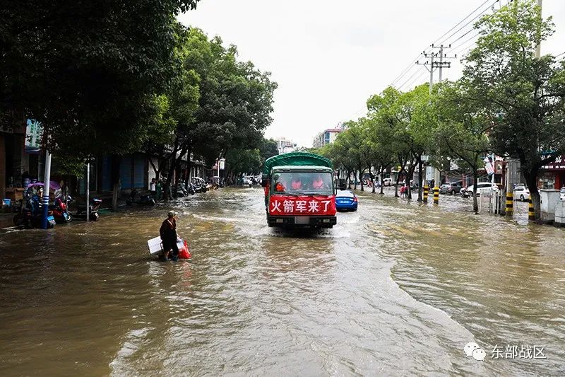 暴雨來襲,官兵逆流而上轉移受災羣眾