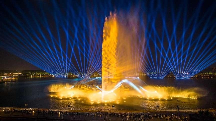 聲光特效、光影色彩、絢麗湖景在夜空中完美融合,一場華美震撼的視覺盛宴,讓遊客大呼過癮。