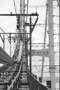 由中交集團二航局承建的伶仃洋大橋,是深中通道的關鍵控制性工程。“貓道”是懸索橋施工時架設在主纜之下、平行於主纜線形的臨時施工便道。伶仃洋大橋有兩根主纜,單側貓道有3000米,兩個主塔之間大概1700米,最高點距離江面達到270米,相當於90層樓高,最低點也接近有30層樓高。