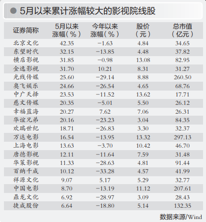 此前,受疫情因素影響,電影市場出現波動。根據拓普數據,每天在運營影院數從2月的峯值11736家減少至4月的6184家,影院關停率超過47%。今年1-5月全國電影票房(不含服務費)139.37億元,同比減少39.76%,比2019年同期減少44.60%;今年1-5月全國觀影人次為3.45億人次,同比減少44.56%,比2019年同期減少50.04%。