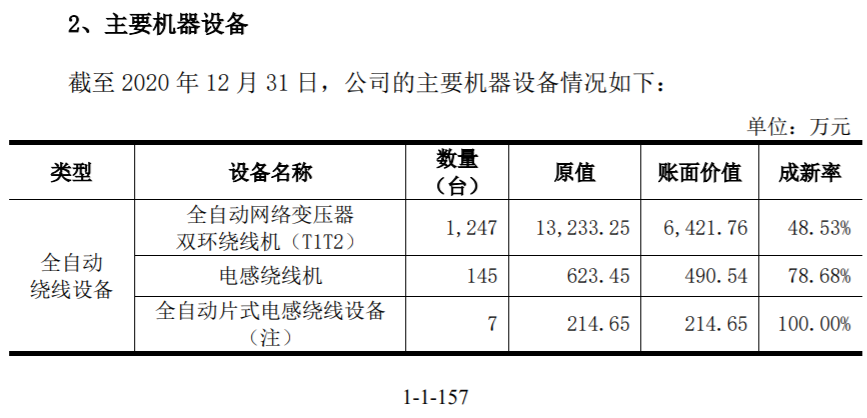 與此同時,《審核問詢函的回覆》第48頁披露,截至本回復出具日,公司已經擁有155台全自動蝴蝶式繞法電感繞線機(並擁有40台正在製造中);這份回覆的簽字日期為2022年4月7日。而與此同時,招股書第280頁披露的主要生產設備信息顯示,截至2021年12月31日公司擁有電感繞線機共計306台,這與《審核問詢函的回覆》披露信息存在重大差異。