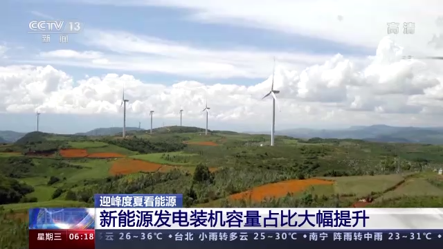 中國電力企業聯合會負責人同時表示,新能源發電量的增加,對緩解迎峯度夏期間用電壓力也起了積極作用。數據顯示,截至今年5月底,我國非化石發電裝機容量10.1億千瓦,其中風電、太陽能發電等新能源發電裝機容量合計6.67億千瓦。