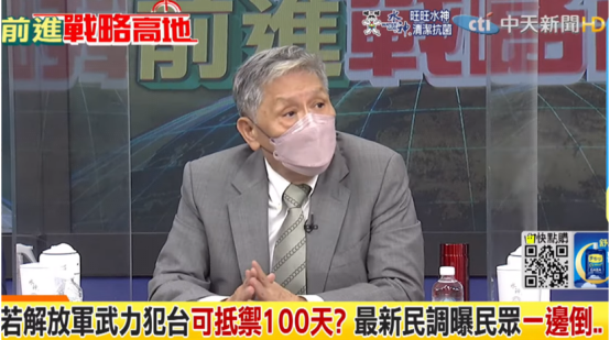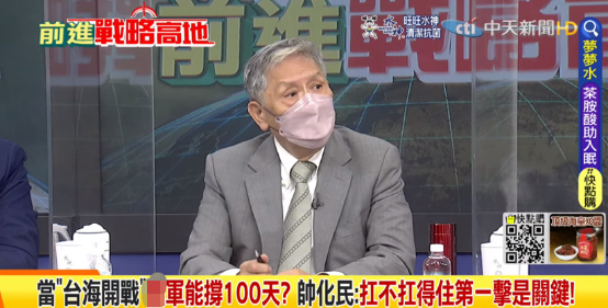 台灣中天新聞25日的政論節目《前進戰略高地》中,對於大陸如果“武力攻台”台軍能不能撐不過100天的問題,帥化民表示,這要從幾個角度來看,要看大陸準備以什麼方式來“武統”台灣。