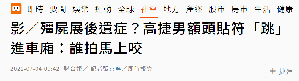 看完“殭屍展”後遺症?台媒:他頭貼“符咒”跳進車廂,乘客傻眼