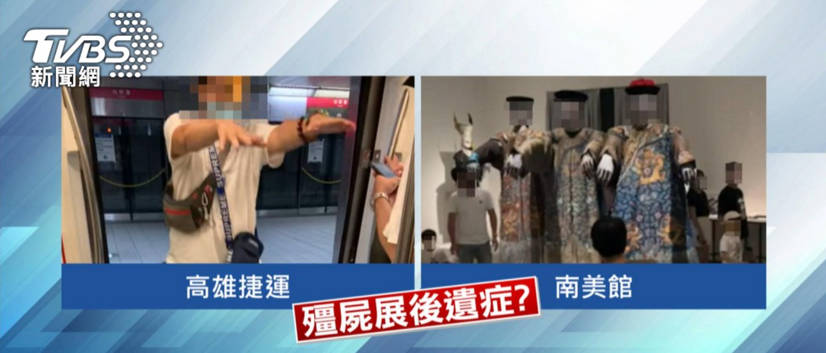 據聯合新聞網報道,台南市美術館6月25日起舉辦“亞洲的地獄與幽魂” 特展,每日吸引5000人蔘展,現在在高雄捷運有網友看到“類似的生物”。有網友7月2日在臉書發佈一段視頻,搭配文字寫下:“搭捷運遇到新角色……”。從畫面中可見,一戴着眼鏡的白衣男子,額頭上貼着疑似符咒的黃色紙張,模仿着殭屍的動作,雙手往前伸直,跳進車廂內,接着大聲怒罵:“誰錄像試試看,馬上咬下去”等語。