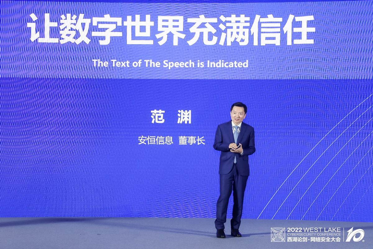 大會上,中國工程院院士鄔賀銓圍繞“建設可信網絡”展開系統化闡述,如何在數字時代構建安全和信任,同樣也是本屆大會的主題所在。中央網信辦網絡數據管理局副局長方新平從我國數據安全管理的角度進行了分享,公安部網絡安全保衞局副局長、一級巡視員郭啓全暢談新形勢下網絡安全的思考與變革,國家信息中心副主任周民從政務數據安全治理角度進行了介紹。安恆信息董事長範淵以“讓數字世界充滿信任”為題,在演講中介紹了網絡安全產品和服務在數字時代的創新、探索。