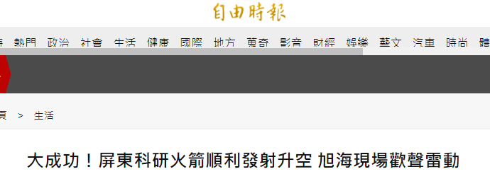 對於台灣發射首枚類衞星載具火箭,親綠的《自由時報》在報道相關消息時,稱之為“大成功”。