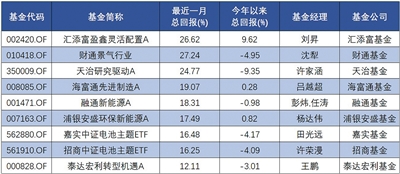 目前管理規模在百億級以上、掌管偏股型產品的170位基金經理近期綜合表現如何?Wind基金經理業績指數顯示,161位基金經理近20日漲幅為正值。其中,國投瑞銀施成、泰達宏利王鵬、東方基金李瑞、農銀匯理邢軍亮、易方達祁禾等19位基金經理該指數漲幅在10%以上。從具體產品看,葛蘭管理的中歐醫療創新A、趙蓓管理的工銀瑞信前沿醫療A、王鵬管理的泰達宏利轉型機遇A儘管今年以來總回報仍為負,但近一個月總回報分別為13.43%、9.40%和12.11%;另外,匯添富盈鑫靈活配置A、天治研究驅動A近一個月回報均超20%,這兩隻產品從年初到6月上旬的區間回報分別為-14%和-30%。