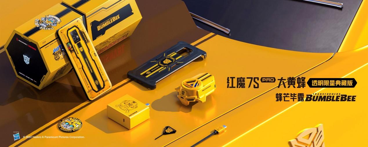 7月11日,紅魔7S系列正式發佈。據發佈會上介紹,在外觀上,紅魔7S Pro採用了透光度高達92%的全高透玻璃後蓋,新增定製防指紋塗層,加上全息幻影嵌入式紋理以及航空鋁合金中框等設計。 此外,繼上半年紅魔推出變形金剛擎天柱與霸天虎信仰套裝後,紅魔7S Pro變形金剛大黃蜂限量典藏套裝也正式亮相。
