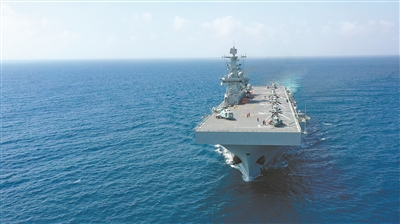 檢驗成果那天,多批多架次艦載直升機從海南艦甲板上騰空而起,標誌着海南艦初步形成垂直投送能力。