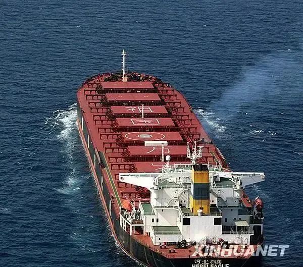 2009年1月7日,由中國海軍護航艦艇編隊護航的中國商船“河北翱翔”號在主甲板上寫出了“祖國萬歲”四個大字。新華社發
