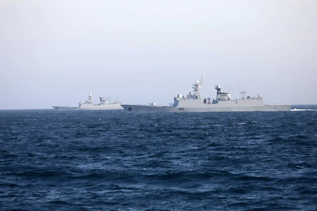 紅日西垂,海面如同撒上一層碎金。聯合艦艇編隊劈波斬浪,全程保持戒備,隨時準備為守衞海洋和平安全而戰。